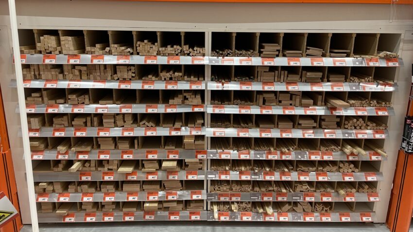 Jag var vägen om Bauhaus häromdagen och passade på att ta en bild på deras planhyvlade sortiment. En bild som är bra att ha som referens för kommande projekt.